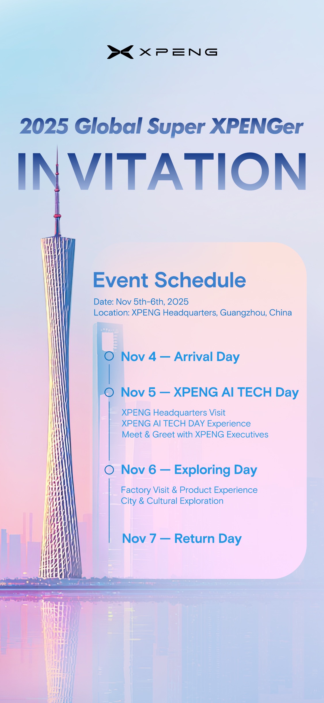 - Nov 5: XPENG AI Tech Day 2025 – “Emergence” (Headquarters)